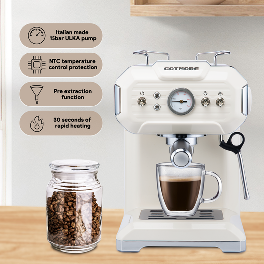GOTMORE Retro Espresso Machine with Milk Frother,360° Adjustable Steam Wand for Cappuccino/Latte/Macchiato with 59oz Removable Water Tank, Easy to Use 15 bar Coffee Maker for Barista, Vintage WhiteRegular price $139.00 USDRegular priceUnit price / per$219.00 USDSale price $139.00 USDSold out