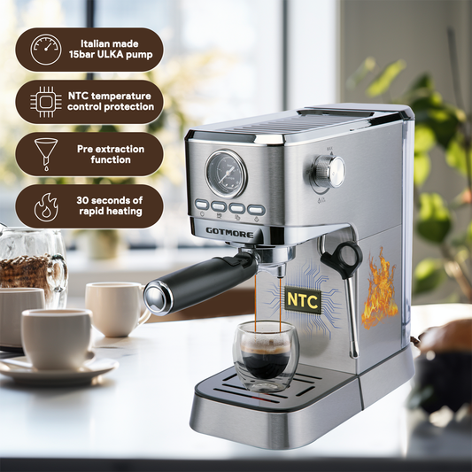 GOTMORE Espresso Machine, 15 bar Semi-Automatic Espresso Maker with Milk Frother Steam Wand for Latte & Cappuccino, Coffee Maker for Home Barista with 60.8oz Removable Water Tank, Stainless SteelRegular price $179.00 USDRegular priceUnit price / per$199.00 USDSale price $179.00 USDSale